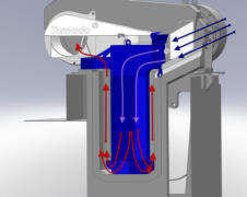 Horizontaler Luftstrom wirbelt Partikel durch Zentrifugalkraft nach außen
